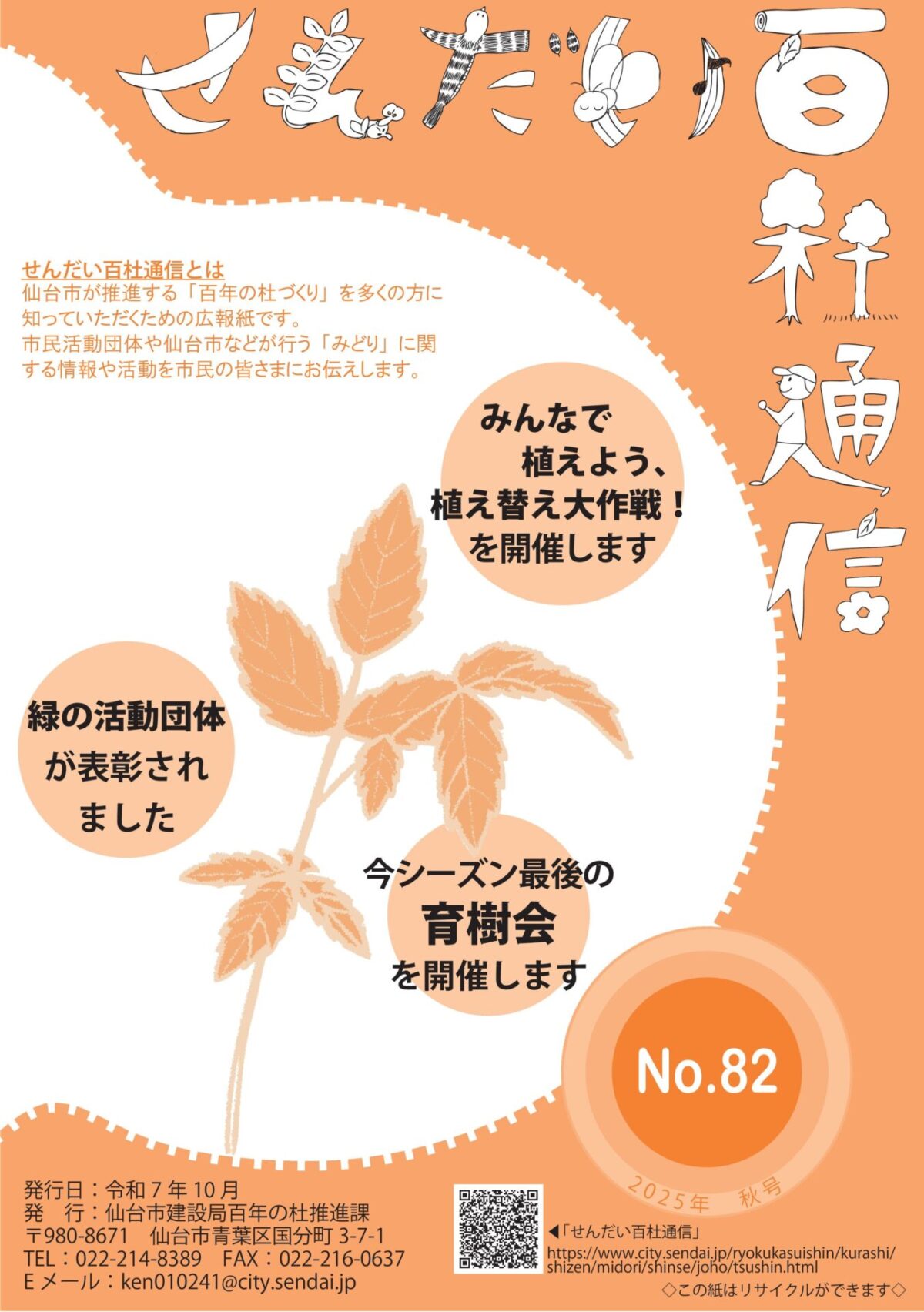 仙台市が推進する「百年の杜づくり」を多くの方に知っていただくため、年4回、「せんだい百杜通信」を発行しています。このたび2025年秋号を発行しましたので、ぜひご覧ください。